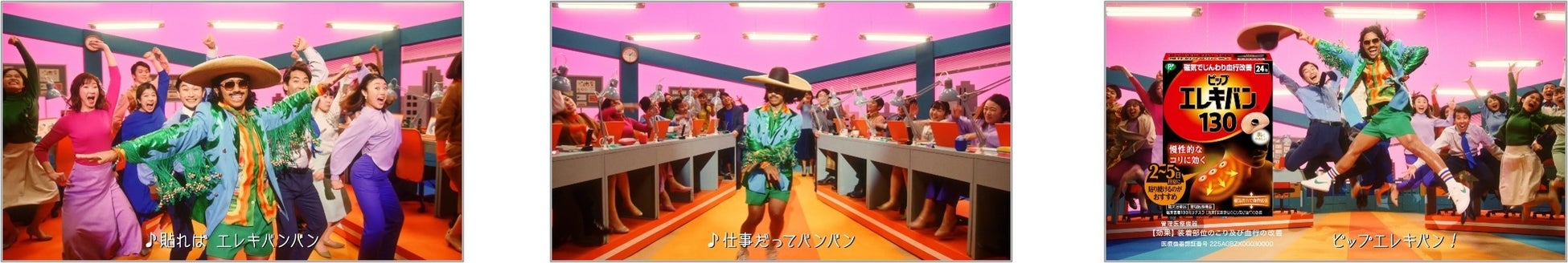 また、バンバンマンと21名のダンサーによるリズミカルなダンスとピップエレキバン仕様の「ラ・バンバ」で、まるでミュージカルのような世界観の新WEBCMは、見ているだけで明るい気持ちなり、何度でも見たくなる映像に仕上がりました。