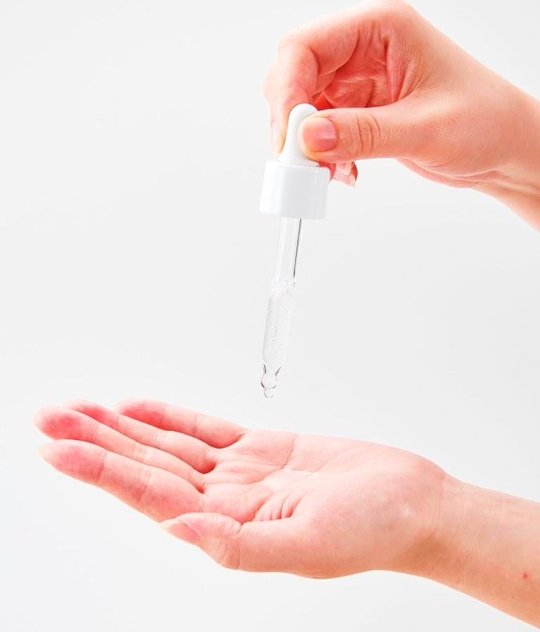 洗顔後、適量をスポイトで手の平にとり、お顔全体を包み込むようにやさしくなじませます。