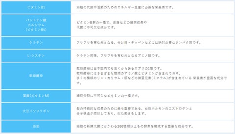 | パントガールに含まれている成分 ビタミンB1(60mg)・パントテン酸カルシウム(60mg)・薬用酵母(100mg)・L-シスチン(20mg) ケラチン(20mg)・パラアミノ安息香酸(20mg) |