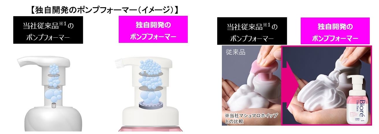 今回採用している独自開発のポンプフォーマーは、多量の空気を注入できるため、約1.5倍量※3のボリュームがある泡を作り出すことが可能になりました。