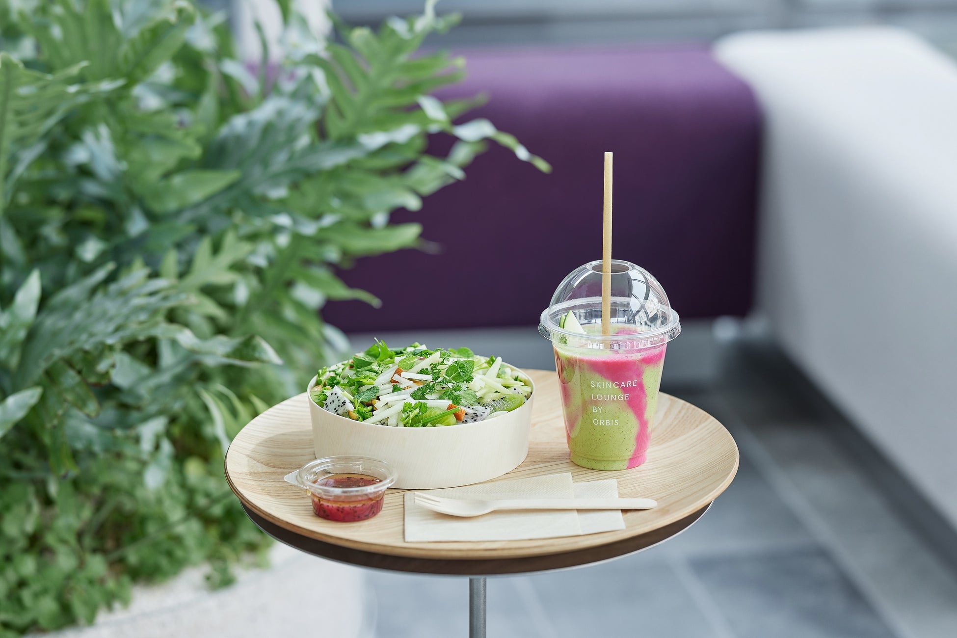 『SKINCARE LOUNGE BY ORBIS』1階にあるJUICE BARでは、食の側面でキレイと健康を内側から整えられるとご好評いただいております「inner color juice」と「inner color salad」をラインナップ。その日の気分や摂りたい栄養素に合わせてお選びいただくことができ、健やかな美しさをサポートしています。