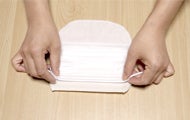 インナーマスクシートの裏面(ガーゼ面)の折り返し部分を広げ、不織布マスクを重ねます