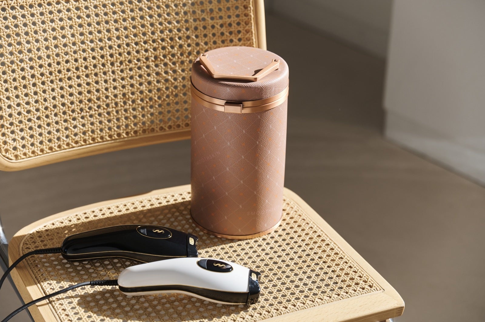 「スムーズスキン pure fit(ピュア フィット)」がコードまでしっかり収納できる大人気のバニティバッグ。これまで販売したものは、すべてお客様から再販売のリクエストが集まるほど大好評です。今回は、柔らかなウォームブラウンのレザー調の素材に、pure fitのデバイスのシルエットで構成されたモノグラムが施されたデザイン。ハンドルなどの金具部分は、ピンクみを帯びたコッパーカラーで、シンプルながらモダンでクラシカル。ユニセックスでお使いいただけます。お部屋に置いてもインテリアの邪魔をしないデザインと、気軽に持ち運べる取手があるので、ちょっとした旅行に持っていくのにもぴったり。バニティバッグ単体でも購入可能です。脱毛を始めるのに最適な春に、ご自身用に、また大切な方へのギフトにいかがでしょうか。