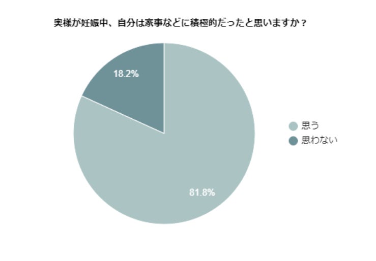 綺和美では、「奥様が妊娠中、自分は家事などに積極的だったと思いますか?」というアンケートを行いました。すると、8割以上の人が「思う」と回答したのです。