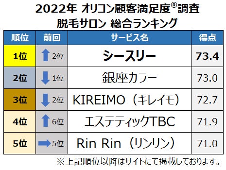 2022年 オリコン顧客満足度(R)調査 脱毛サロン ランキング