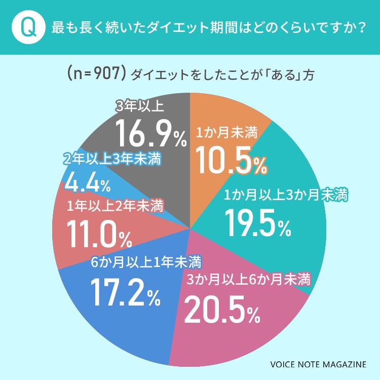 続いて、これまでで最も長く続いたダイエット期間について、さらに聞いてみました!