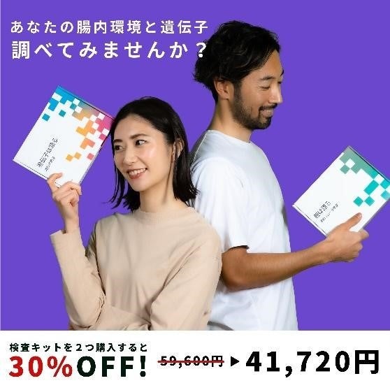 - 購入価格 遺伝子検査、腸内フローラ検査 2本購入で30%オフ 通常59,600円が30%オフの41,270円(税込)