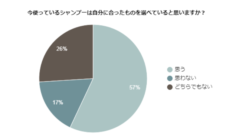 綺和美では、「今使っているシャンプーは自分に合ったものを選べていますか?」というアンケートを行いました。すると、57%の人が「思う」と回答したのです。