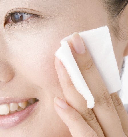 顔全体をやさしくふきとります。古い角質をオフして、肌にごり*をケア。