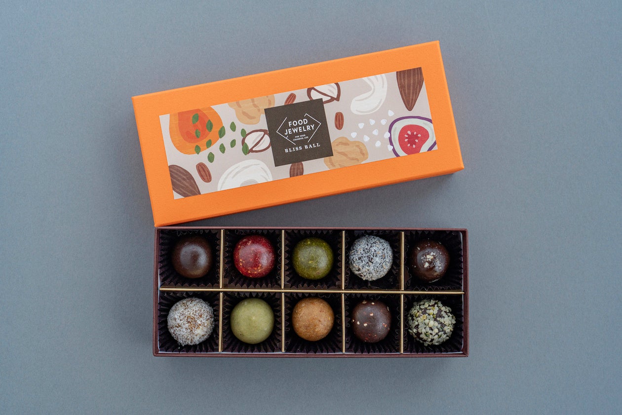 FOOD JEWELRY(フードジュエリー)は、たった一度の人生を最高に楽しみたい全ての人に、体質・体調・ライフスタイルに合わせて”ココロとカラダの調子を整えるため”に食べる食事(メンテナンスフード)を届けることをミッションとしています。日本初のブリスボール専門店は、わたしたちが作る初めてのメンテナンスフードです。