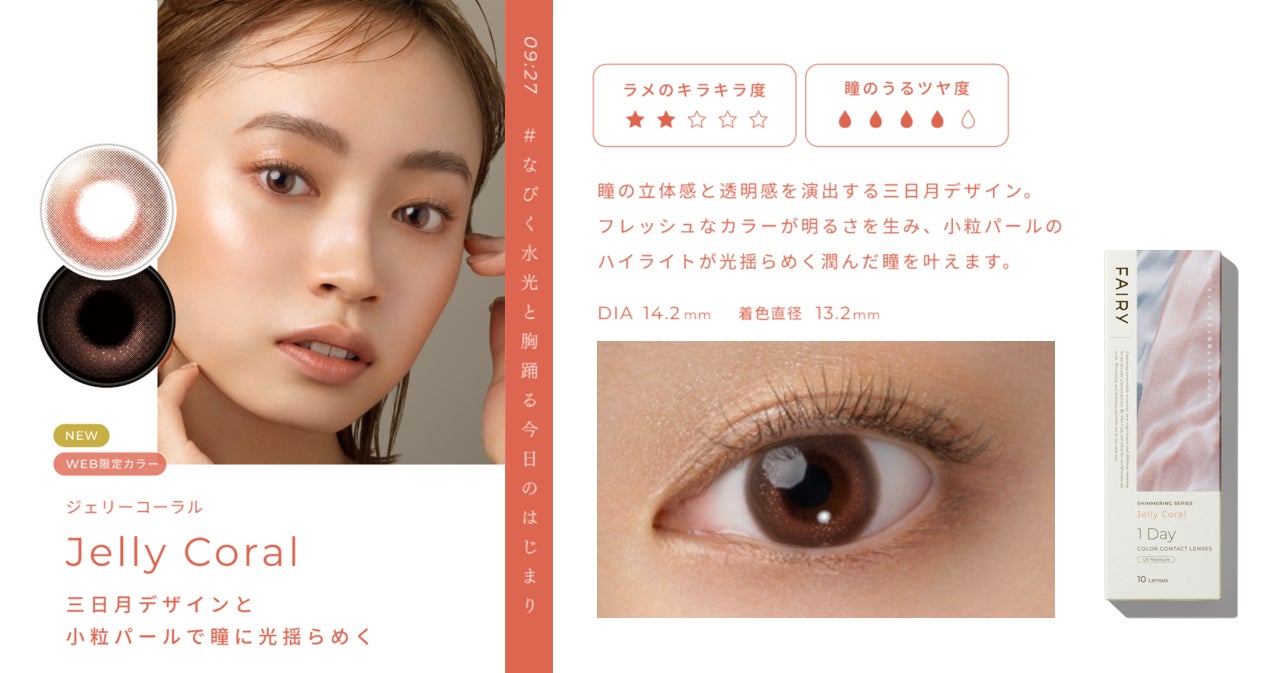 新『FAIRY(フェアリー)』は、光を味方につけるラメカラコンとして話題となった「シマーリング」シリーズを中心に、“瞳に潤みやツヤを生むラメの効果“と”自然になじむデザイン“はそのままに、自分の個性・好きを理由に、自由に物を選び、表現できる “ワタシらしさ”を大切にするブランドへと進化します。