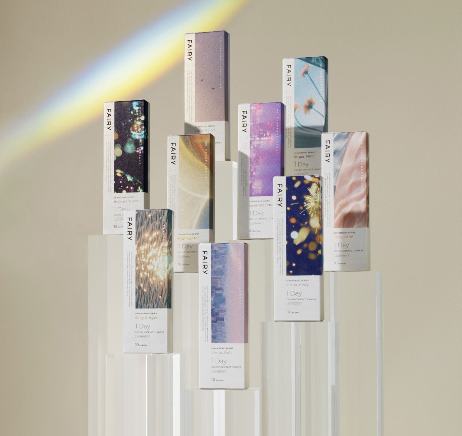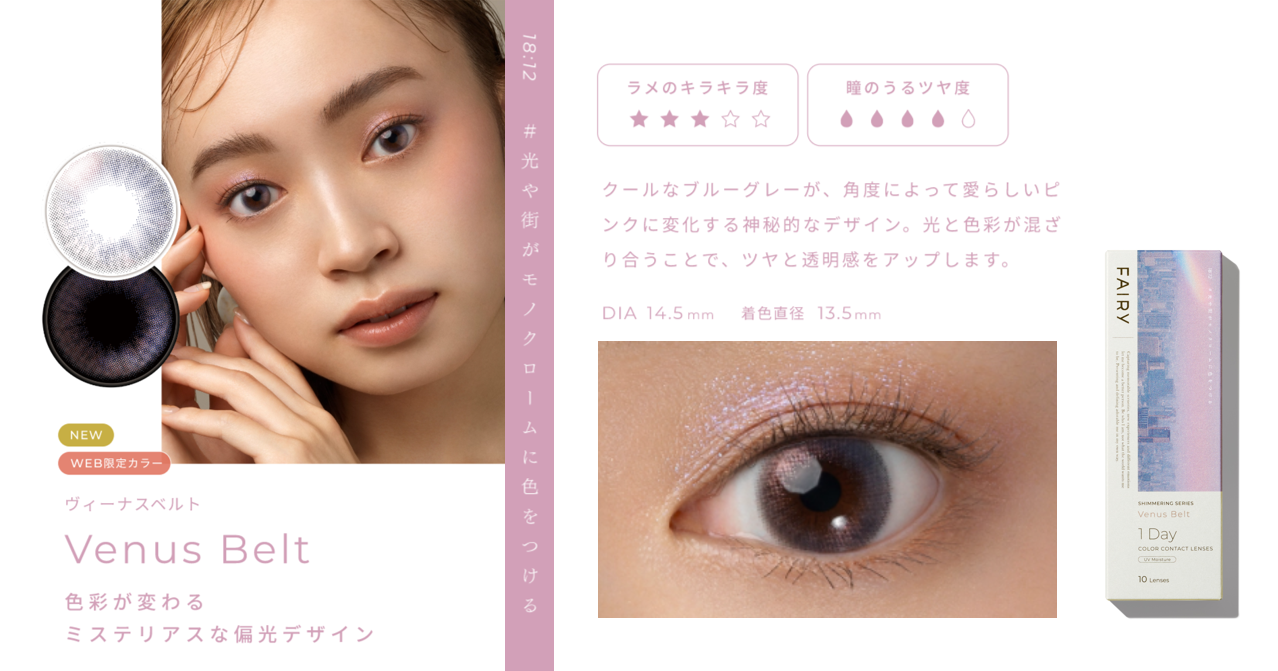 新『FAIRY(フェアリー)』は、光を味方につけるラメカラコンとして話題となった「シマーリング」シリーズを中心に、“瞳に潤みやツヤを生むラメの効果“と”自然になじむデザイン“はそのままに、自分の個性・好きを理由に、自由に物を選び、表現できる “ワタシらしさ”を大切にするブランドへと進化します。