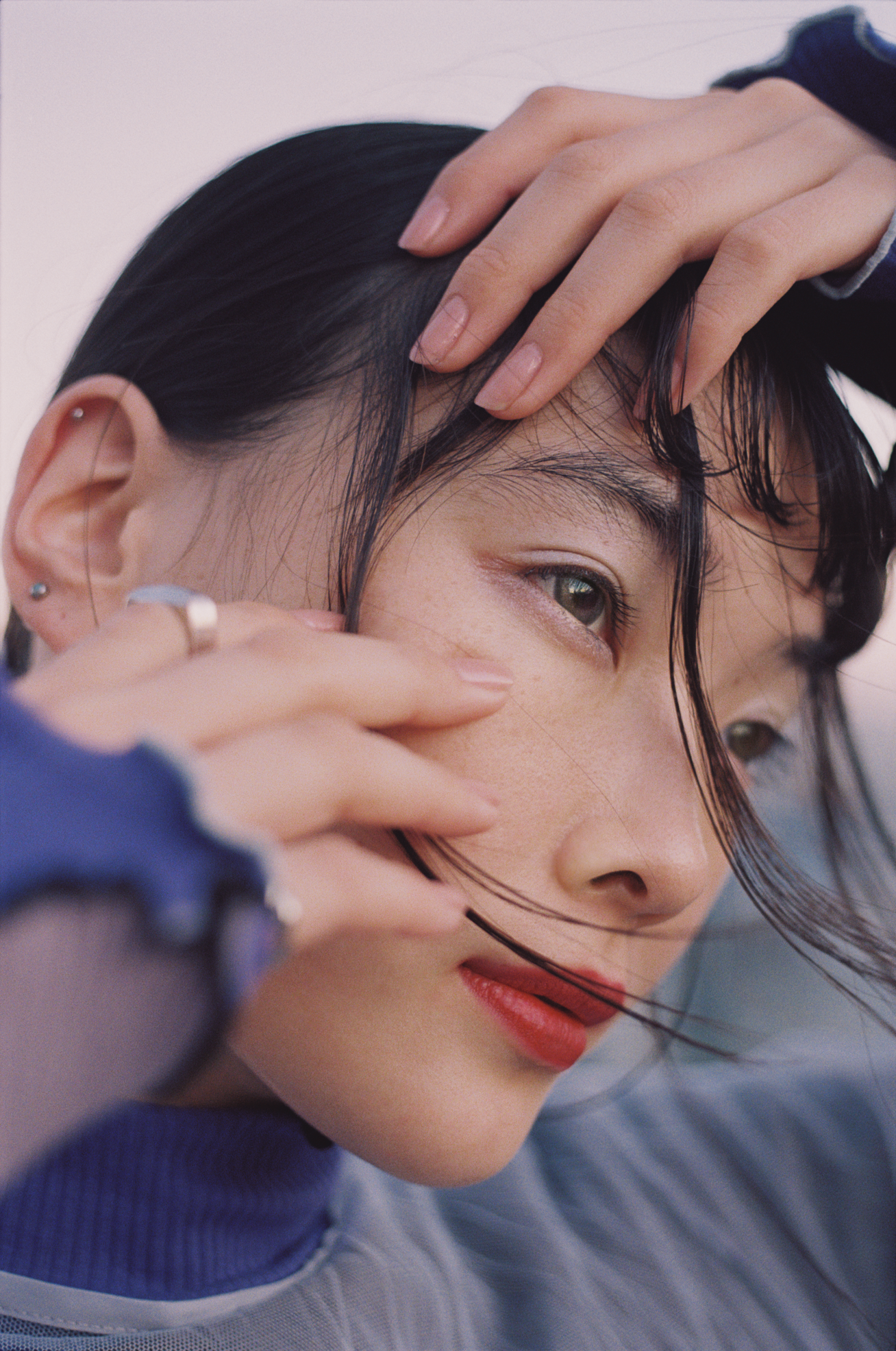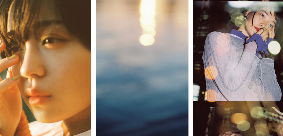 これらの画像はすべて、フィルムカメラで撮影をすることで、デジタル撮影では表現できない、“今”というリア ルな心情や空気感を切り取り、表現しています。(PHOTOGRAPHER:北岡 稔章/ポートレイト作品を中心に、人 の感情の揺らぎや美しさの中に垣間見える不安定さを繊細に表現する写真家)