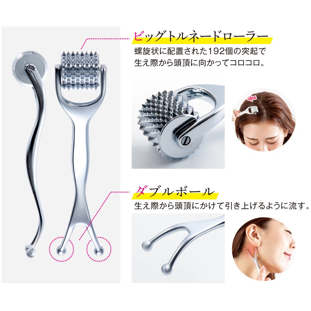 1.らせん状に配置された192個の刺さない美容鍼で頭皮をほぐす!