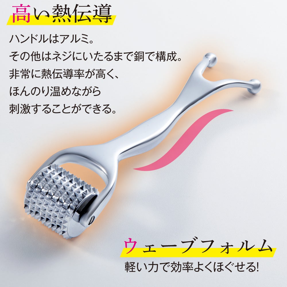 1.らせん状に配置された192個の刺さない美容鍼で頭皮をほぐす!