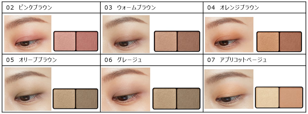 カラーパレットは、ツヤとマットの異なる2つの質感でつくるグラデーションで、さりげなく印象的な目もとに仕上がるアイシャドウです。ジェルライナー同様、ブラウンベースのカラーバリエーションも、くすみカラーなのに肌なじみよく、使いやすいと好評です。今回の新色は、シルクカラーには旬のカラーを、カシミアカラーにはなじみカラーを配置した新しい組み合わせ。又、シルクカラーには、ピンク・ブルー・グリーンのパールを配合して、多彩な輝きをいれることで、春らしい軽やかな華やかさを演出。