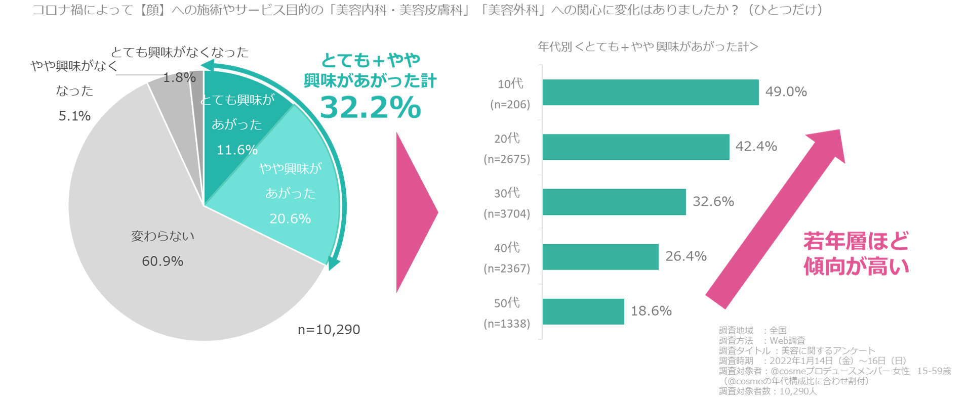 (2)若年層を中心に、コロナ禍によって顔への「美容医療・整形」関心が増加