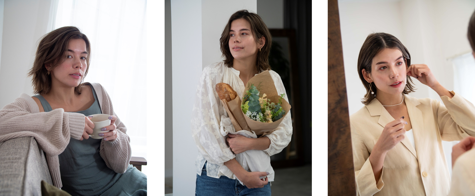 それぞれのシーンやマインドに合わせたエフォートレスなメイクは、SHIGETA PARISが大切している自分らしい素肌美を叶えます。あれもこれもと欲張らず、頑張らず、無理をしない。自分が楽しい、心地いいと感じるハッピーで前向きなメイクです。