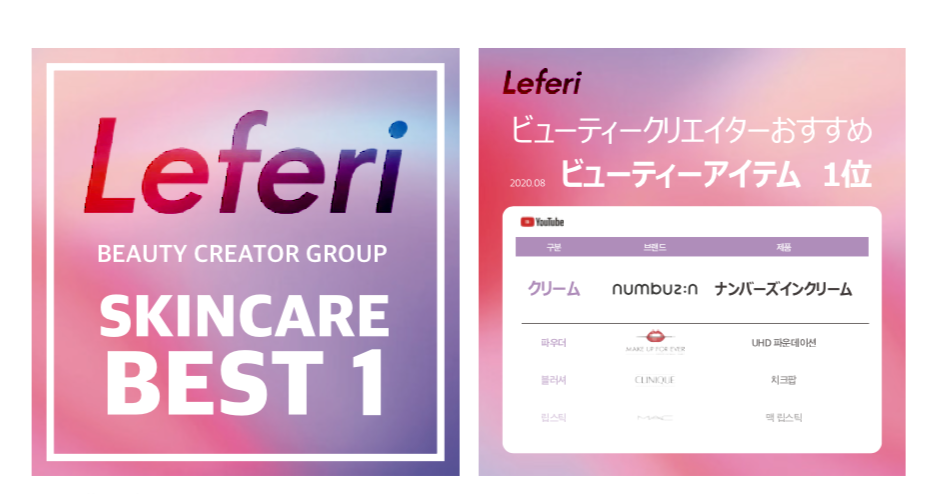 韓国のMCNであるLeferi所属ビューティークリエイターが選んだ「BESTスキンケア」1位達成