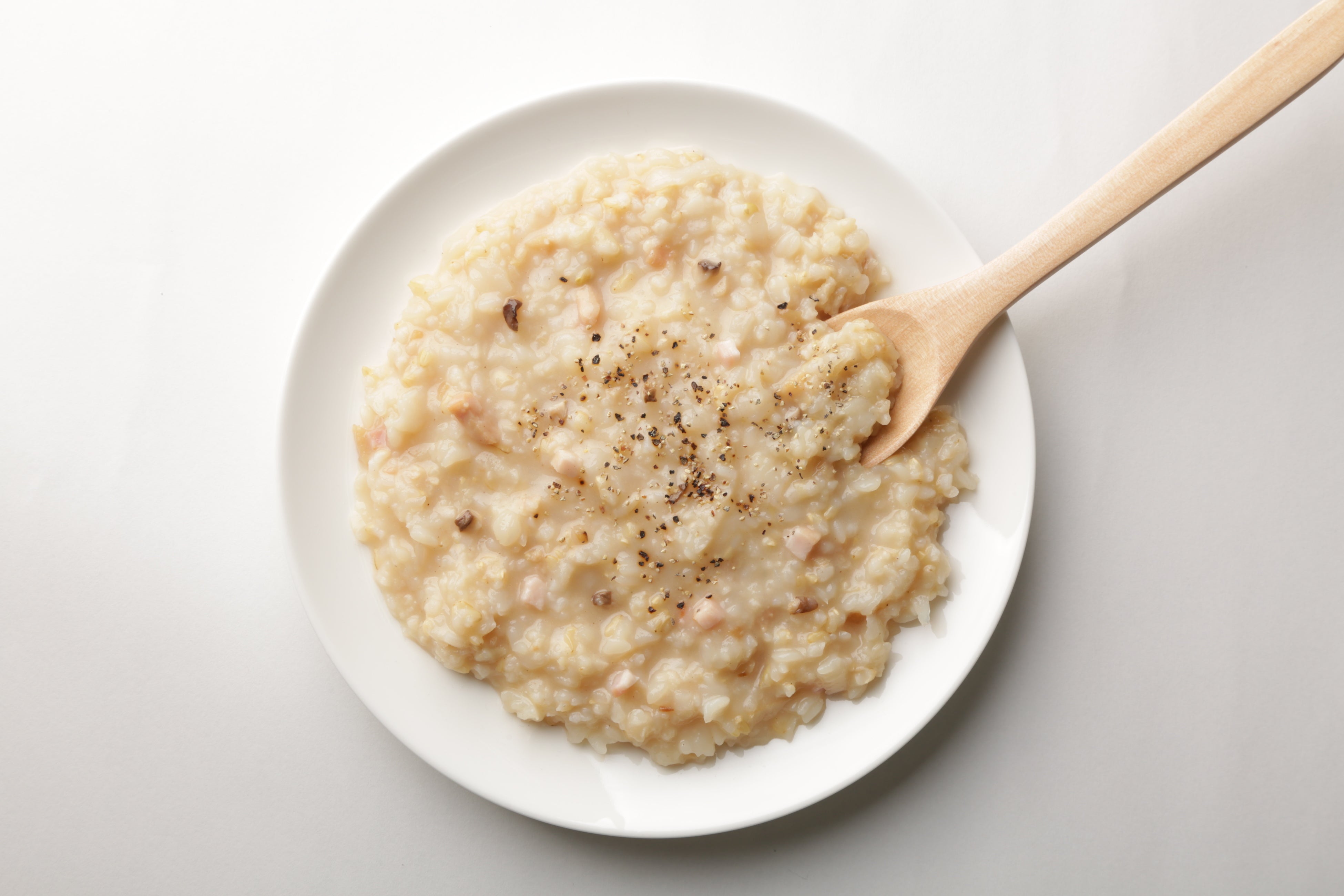 3種の具材入(鶏肉・にんじん・玉ねぎ)で、かつおだしに柚子胡椒香るリゾットです。