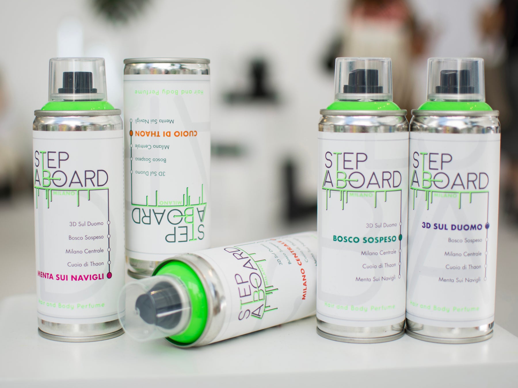 コンセプトはミラノの街の香りと空気を缶の中に閉じ込めるというもの。グラフィティーアートのごとく創造性豊かにスプレーで街を彩るかのように、自分自身にスプレーして香りで自らを彩る。 ガスを使わず空気を圧縮して噴き出す特殊構造をもつスプレー缶は、逆さにしても使用でき、美しくも細やかな連続的な霧状噴射を可能にした。特殊な機構で空気の侵入を防ぐことで結果的に香りの劣化も抑え、アルコール使用率も抑えて体と髪へのダメージを減らすことにも成功している。 ストリートでポップなグラフィティーアート的な要素をまとった全く新しい香水体験を創造して世界に提示してみせたステップ・アボードの快進撃はまだはじまったばかり。