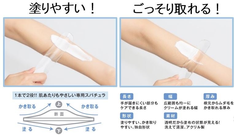 仕上がりキレイに除毛が出来るように、独自形状のスパチュラを作りました!