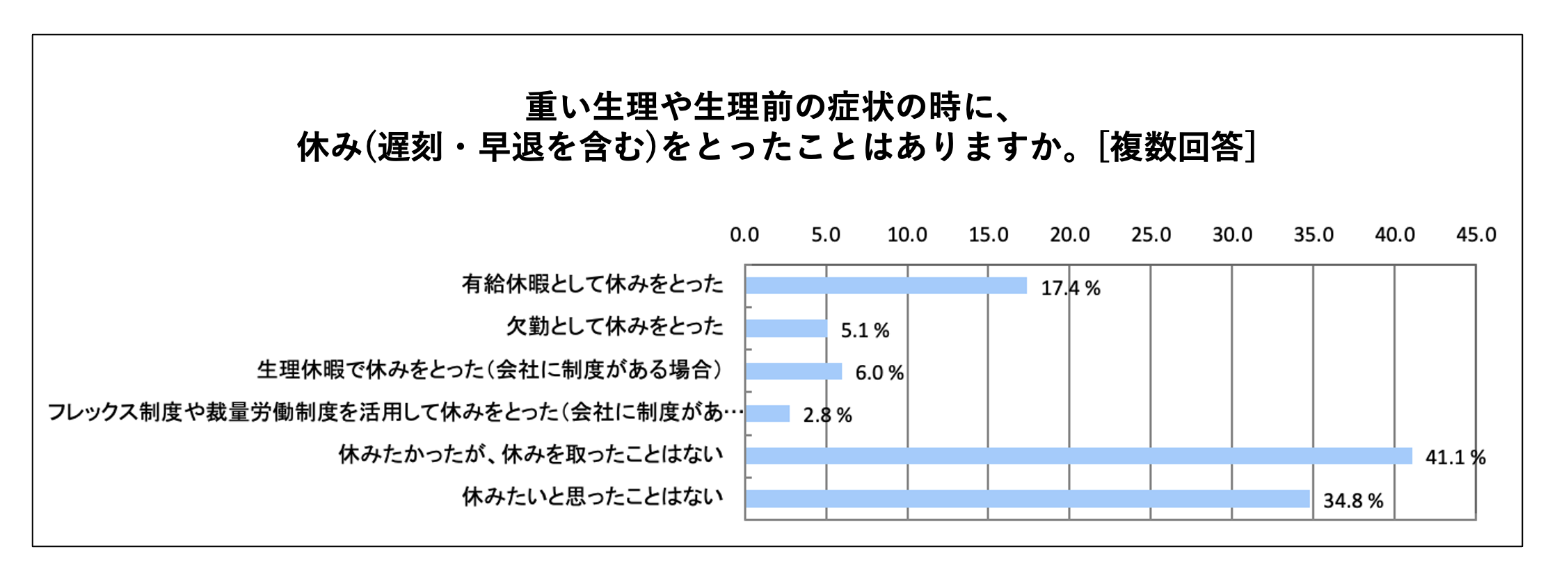 - 重い生理やPMSで休みたかったが、休みを取ったことはない女性が41.1%