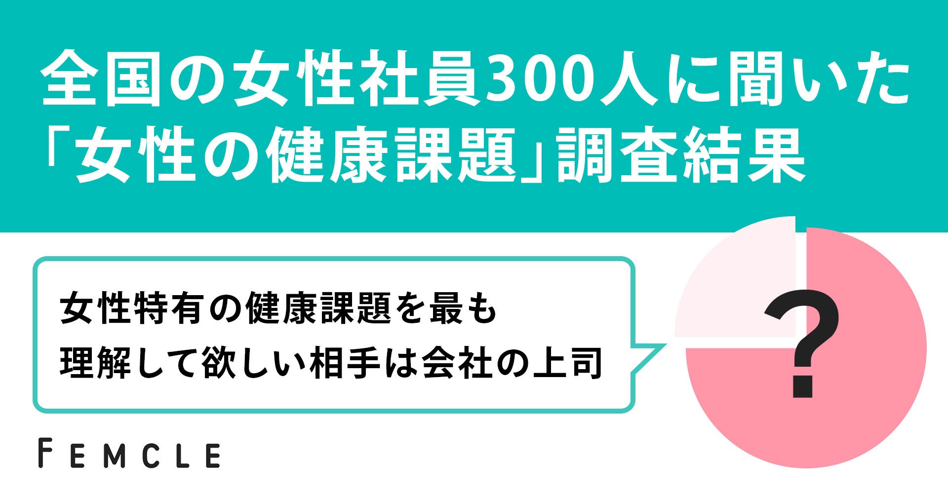 本調査は、健康課題の実態や対策すべき課題を明らかにすることを目的に、全国の女性社員300名に “健康面の問題”や、“会社への要望”などを調査しました。