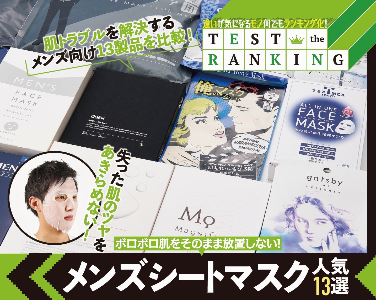肌トラブルを抱えやすい季節の変わり目。花粉の影響や日々のマスク生活で、肌荒れが気になっている人も多いのでは? そんなときに活躍するのが、保湿成分や美容成分などをたっぷりしみ込ませた「シートマスク」。顔に貼るだけで、乾燥や年齢によるくすみまで手軽にケアできます。女性向けの化粧品と思いきや、メンズ向けの製品も多くのメーカーから登場しているんです。そこで、ドラッグストアやネットショップで気軽に購入できる男性向けシートマスク13製品を一斉テスト! 肌トラブルの改善に役立つ珠玉の一枚を探しました。本リリースでは、編集部が“本当におすすめできる”シートマスクの⼀部をランキングでご紹介します。