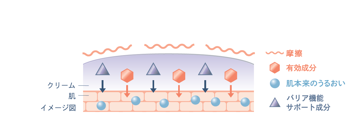 摩擦を減らしてお肌を守りながら、有効成分やうるおいをお肌に閉じ込めます。