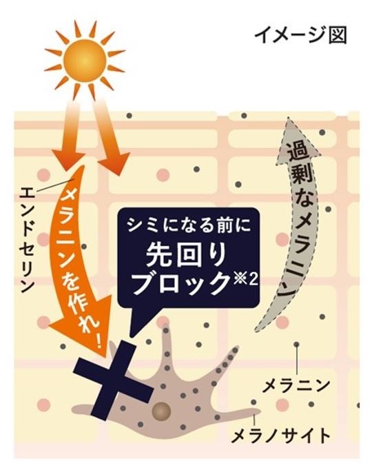 シミになる前、増える前に“先回りブロック※2”して、メラニンの生成を抑えシミ・ソバカスを防ぐ