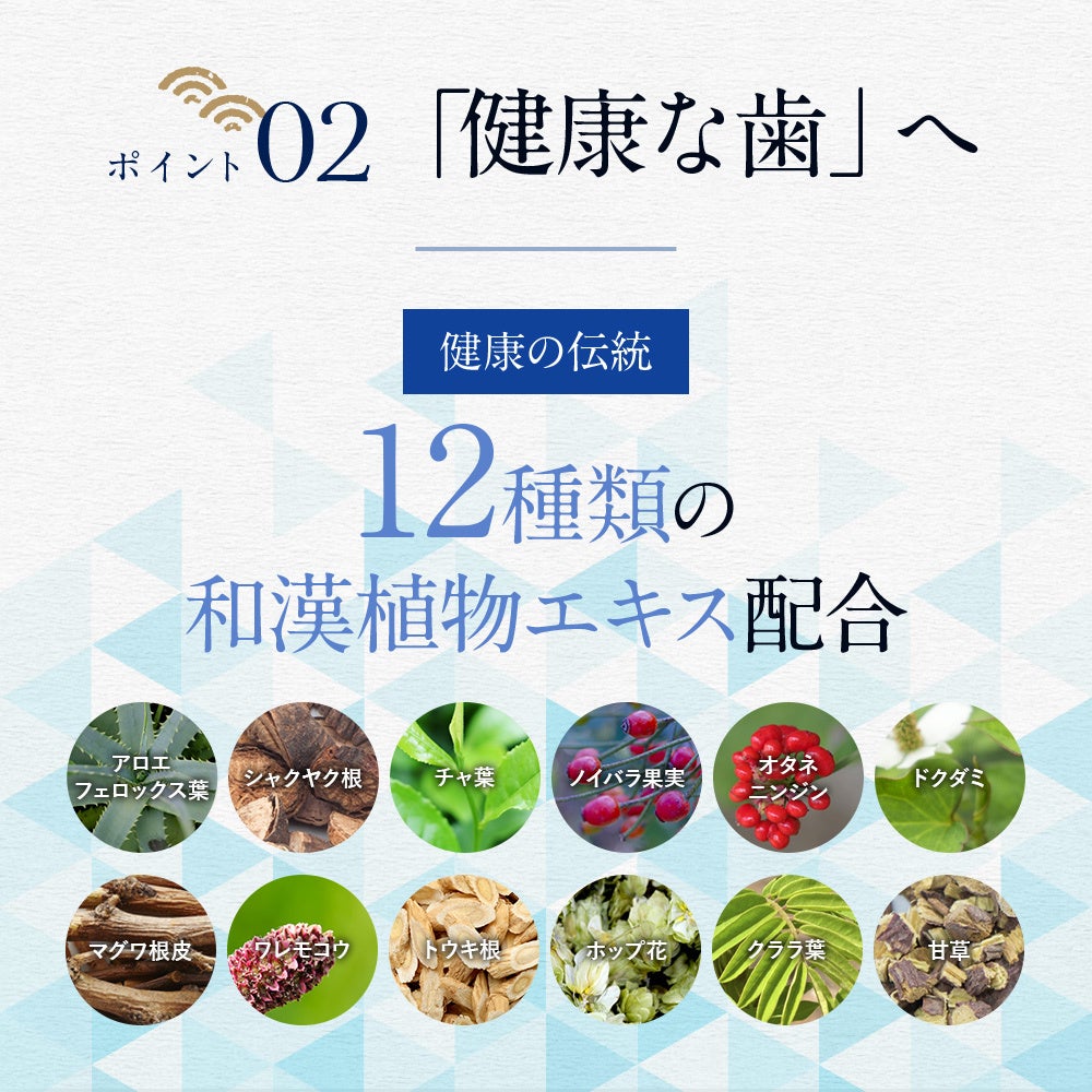 - 歯を失う原因を予防。12種類の和漢植物エキス