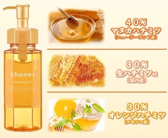※2製品に配合しているハチミツ(保湿)の比率、画像はクレンジングオイルの比率