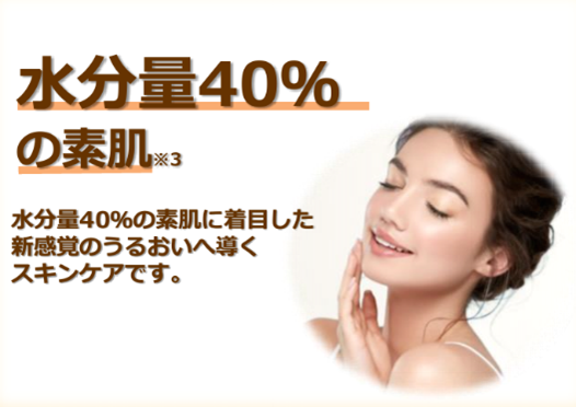 新感覚の潤いへ導くスキンケアブランドとして、 水分量40%の素肌(※4)を目指します。