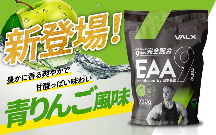 フィットネスブランド「VALX(バルクス)」を展開する株式会社レバレッジ(本社:東京都渋谷区、代表取締役:只石昌幸)は、山本義徳氏プロデュースの『VALX』商品として『VALX EAA9 青りんご風味』を2022年3月9日(水)に新発売いたしました。