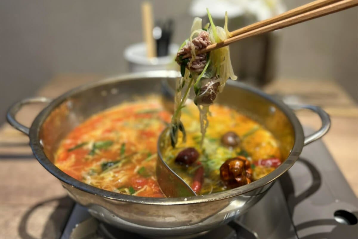 鰹と昆布の出汁に胡麻油やラー油、生姜や赤唐辛子、八角などを使用したやみつきになるスープです。