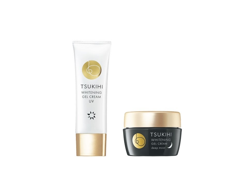 「TSUKIHI 薬用美白ゲルクリーム UV」は、朝の洗顔後に使用するだけで、化粧水・美容液・乳液・クリーム・日焼け止め・化粧下地の6役を果たします。日焼け止めは、国内最高表示のSPF50+/PA++++で、ブルーライトまでカット。伸びがよいジェルで、肌をしっとりなめらかに整えるため、化粧ノリもアップし、朝のメイクが楽しくなります。「TSUKIKI 薬用美白ゲルクリーム ディープモイスト」は、夜のクレンジングや洗顔後に使用するだけで、化粧水・美容液・乳液・クリーム・パックの5役。寝ている時にじっくりとパックすることができるため、翌朝の肌のコンディションが楽しみになります。