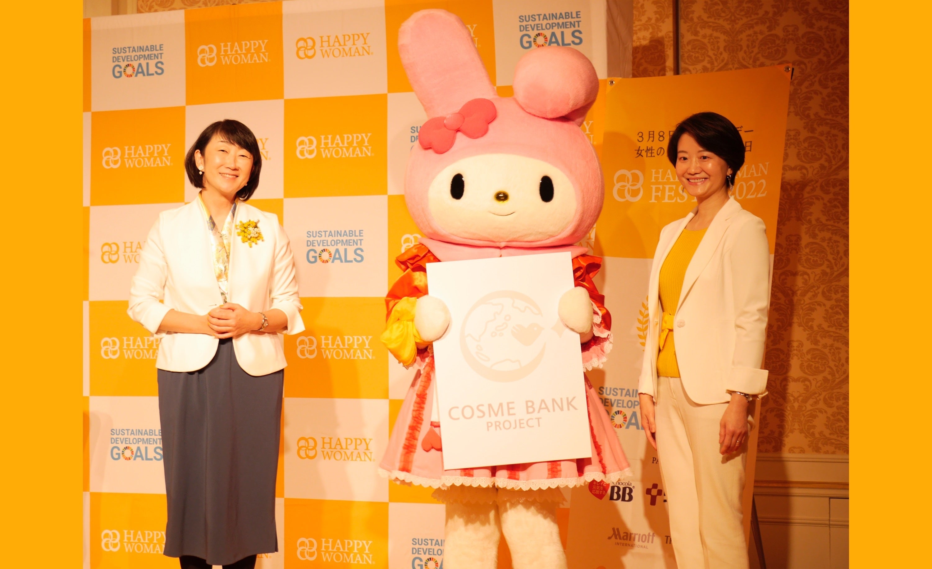 ハリウッド株式会社(本社:東京都港区六本木)は、取締役/山名 群が理事の一般社団法人バンクフォースマイルズより、3月8日国際女性デー|HAPPY WOMAN FESTA 2022で、『コスメバンクプロジェクト』(https://cosmebank.jp)の本格始動と取り組みについて山田メユミ理事長とともに発表いたしました。ハリウッド化粧品は物品と人財の両面でこのプロジェクトを応援しています。