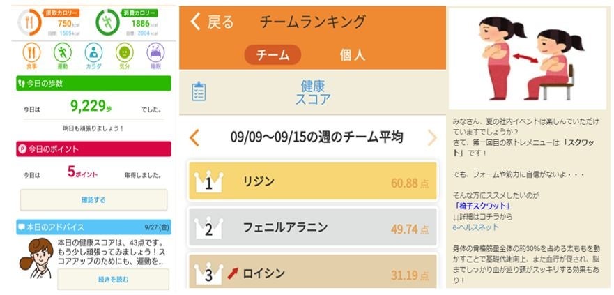 1.自社健康AIアプリ「カロママ プラス」で従業員の身体活動量を向上