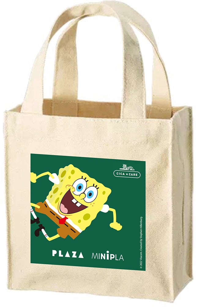 シカデイリースージングマスクのボックスにフィットするサイズ感のミニトート。スージングマスクのボックスとおそろいのスポンジ・ボブデザインです。ちょっとしたお出かけ時の手荷物や、小さめのランチボックスを入れるのにおすすめ!