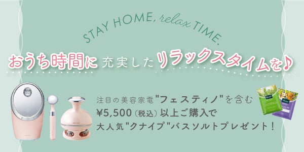 コスメ専門店「ROSEMARY(ローズマリー)」にて、FESTINO(フェスティノ)取扱いショップ限定で「おうち時間を充実しよう♪」キャンペーンを開催致します。期間中、FESTINO(フェスティノ)アイテム含む税込5,500円以上ご購入で、大人気“クナイプ”のバスソルト1回分をプレゼント!