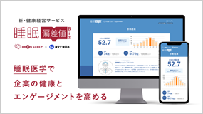 開しております。従業員の「睡眠」から企業との「エンゲージメント」を可視化し、さらに、全国の睡眠偏差値と比較することで、自社だけでは表面化されていない課題に新たに気づくことができ、プレゼンティズムを改善することができるサービスです。