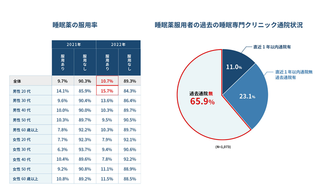 今年の調査では睡眠薬の服用率が全体で10.7%。昨年の結果よりも1%ですが、上昇が見られました。女性で