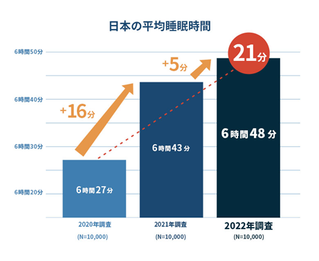 2022年度版日本の『睡眠偏差値®』調査結果報告世界一睡眠時間が短い日本の睡眠時間3年で21分増加。