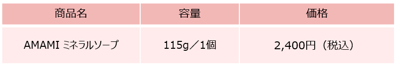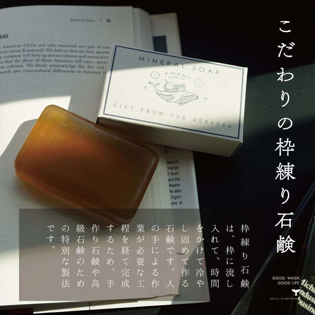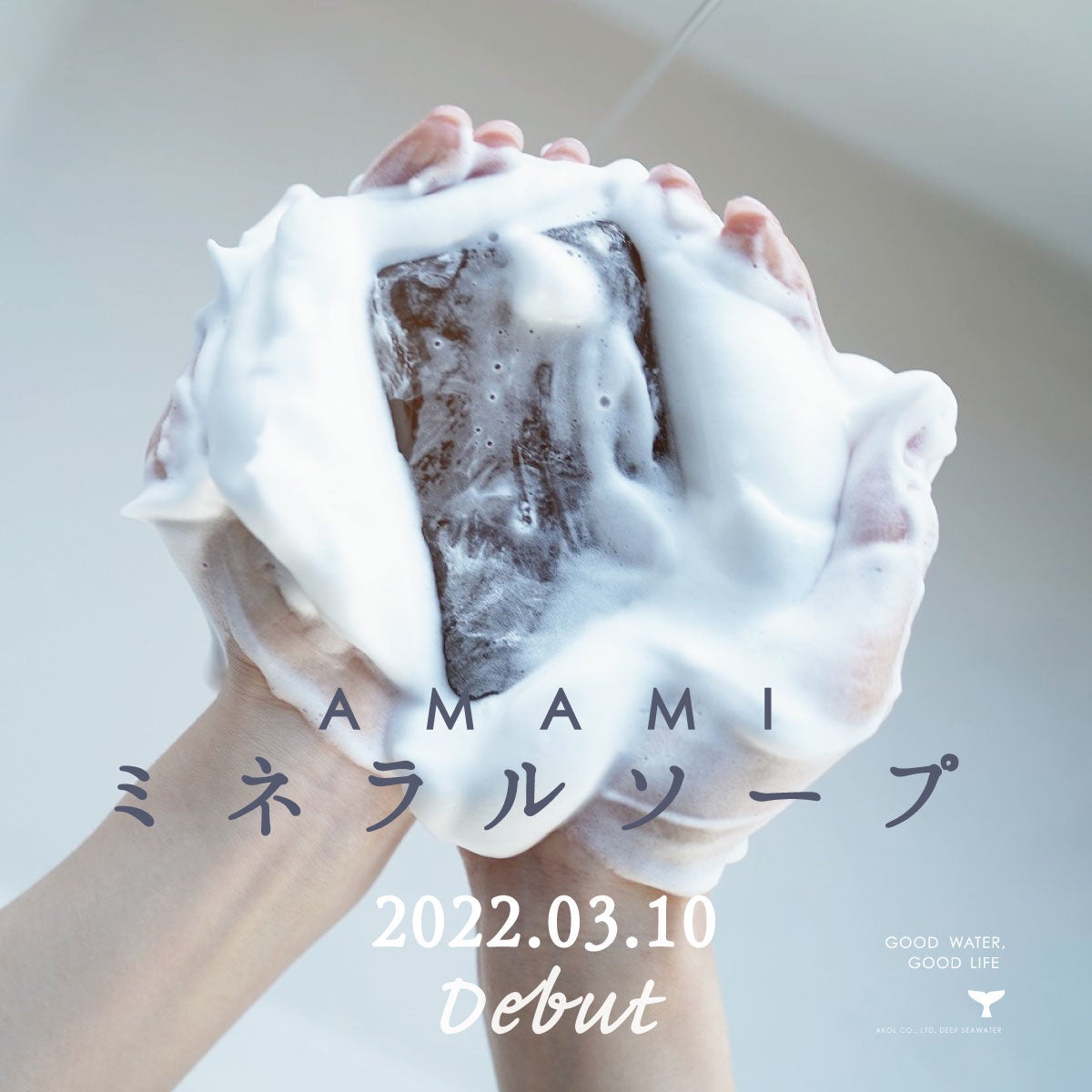 この度、海洋深層水やミネラルによる健康から一歩先に進み、美を提供したいという思いから、生命のルーツである海の成分を配合した石けん「AMAMIミネラルソープ」を開発致しました。