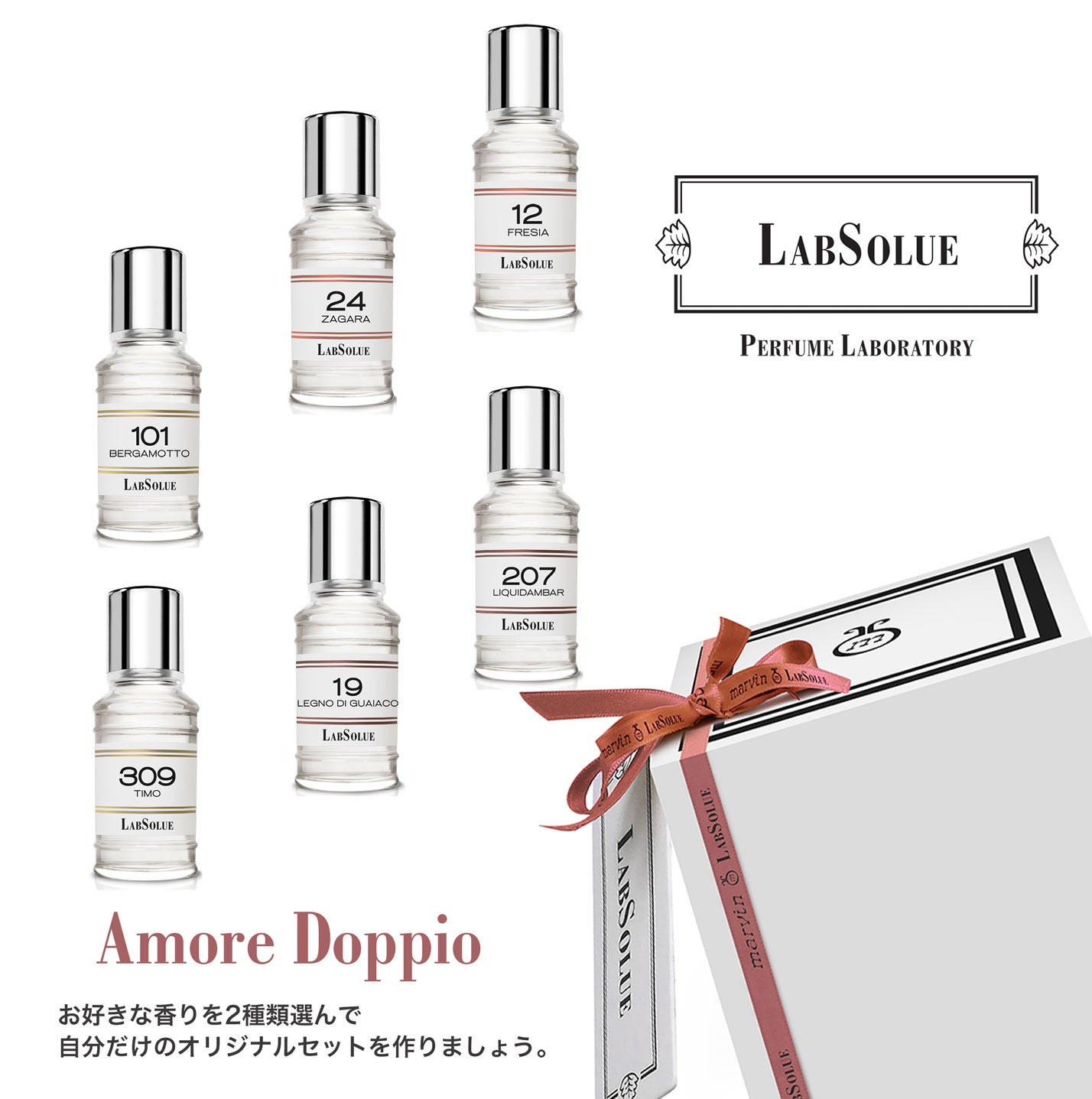 LabSolueの香り豊かなオーデパルファム、定番シリーズの中から、特に人気の高い6種の香りをピックアップ。