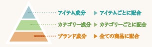 植物の力を効果的に発揮させる独自の配合ルールとして、すべての商品に3つの要素を選定(=成分ピラミッド)。各成分が複合的に作用し、適切なスキンケア効果をもたらします。選定した成分は全てオーガニック、ワイルドクラフトまたは無農薬の植物原料を使用。