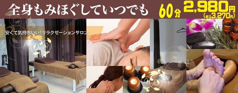 ボディケア 60分 2980円(税込3270円)+無料延長10分!!