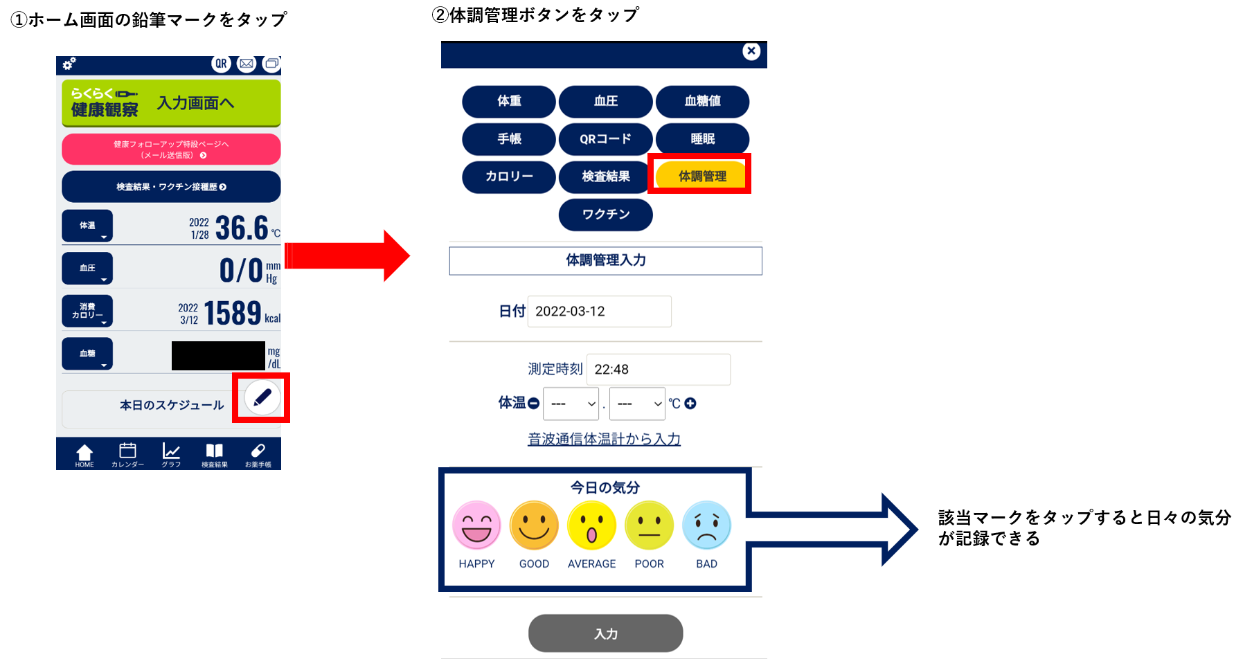 『健康日記』アプリに「体調管理」の機能が追加されました。