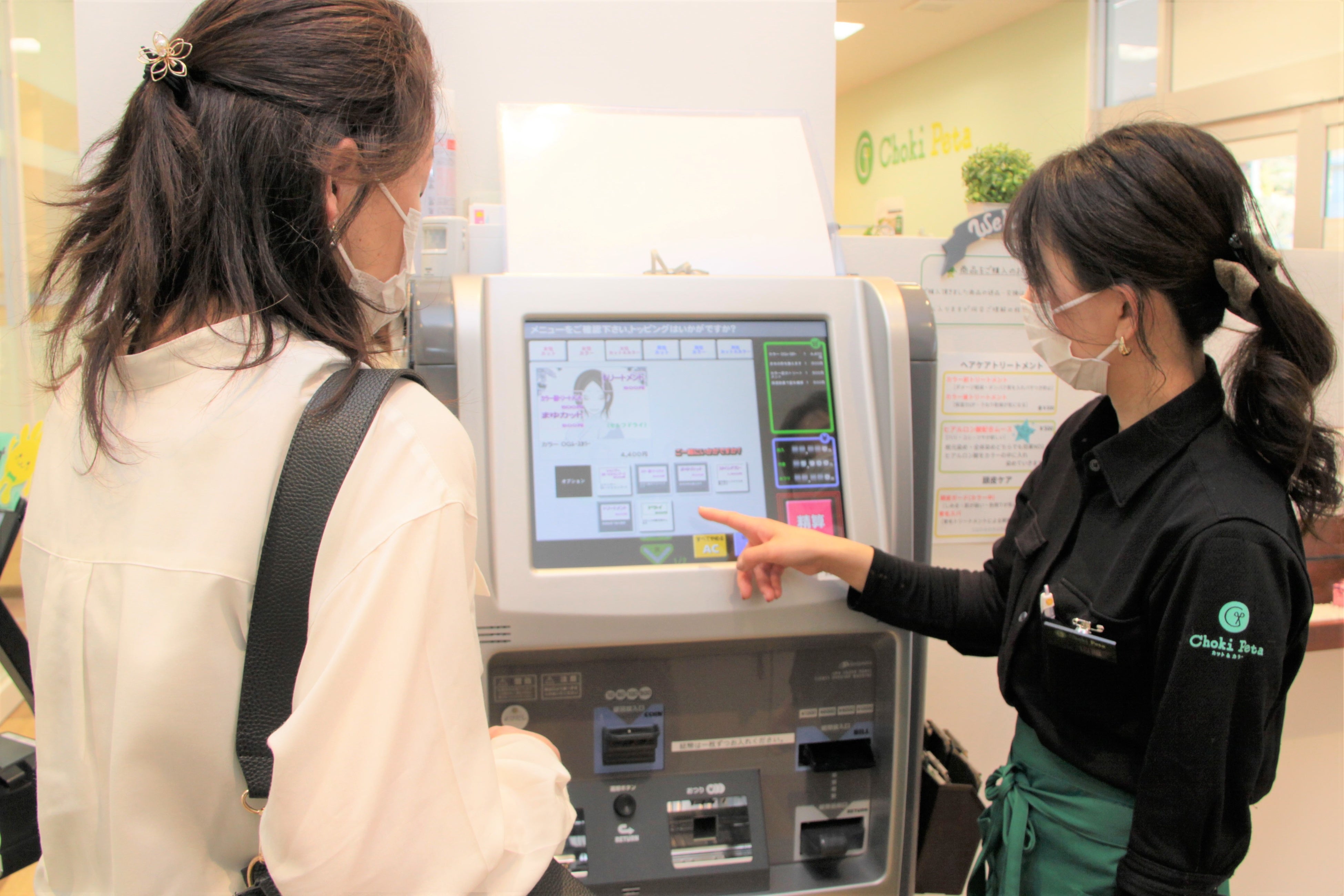 1,000円代でカットができる低料金の美容室・理容室は男性客中心というイメージが一般的であるなか、チョキペタの利用者は、40代以上の女性が8割を占めています。低料金、短時間施術で満足度の高いサービスを提供するため、美容室としては珍しい様々な工夫をしています。例えば、普段の生活導線上に美容を取り入れていただきやすくする目的で主にスーパーの店内に出店し、買い物ついでに立ち寄ることができるようにしています。また、予約は不要で少し時間ができた時などに気軽に利用することができます。そのほか、お会計は券売機で事前精算、オートシャンプー機によるシャンプー、セルフブローブースを設置し自分でドライやスタイリングができるようにするなど、効率的な仕組みを取り入れながら安さと早さを実現しています。